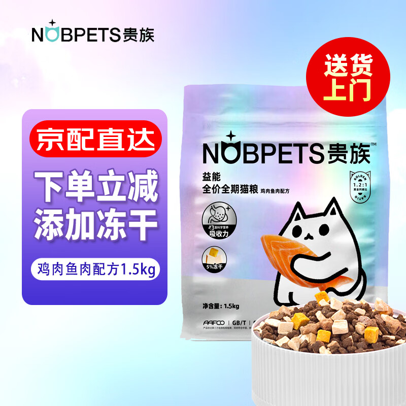 贵族益能鸡肉鱼肉冻干猫粮全价全期成猫幼猫通用猫粮 益能猫粮鸡肉鱼肉配方1.5kg