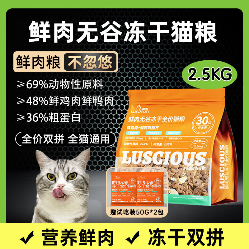 路斯(Luscious)鲜肉冻干猫粮2.5kg无谷全价成猫幼猫流浪猫粮全阶段营养5斤装 5斤装 0kg 以实际下单规格为准