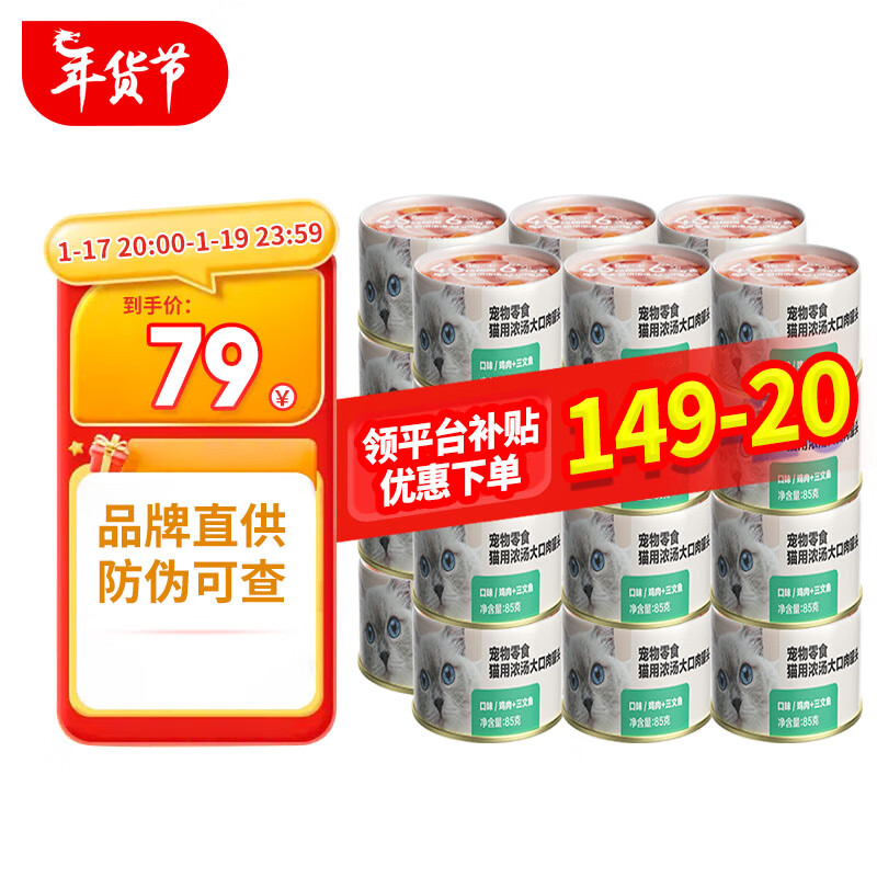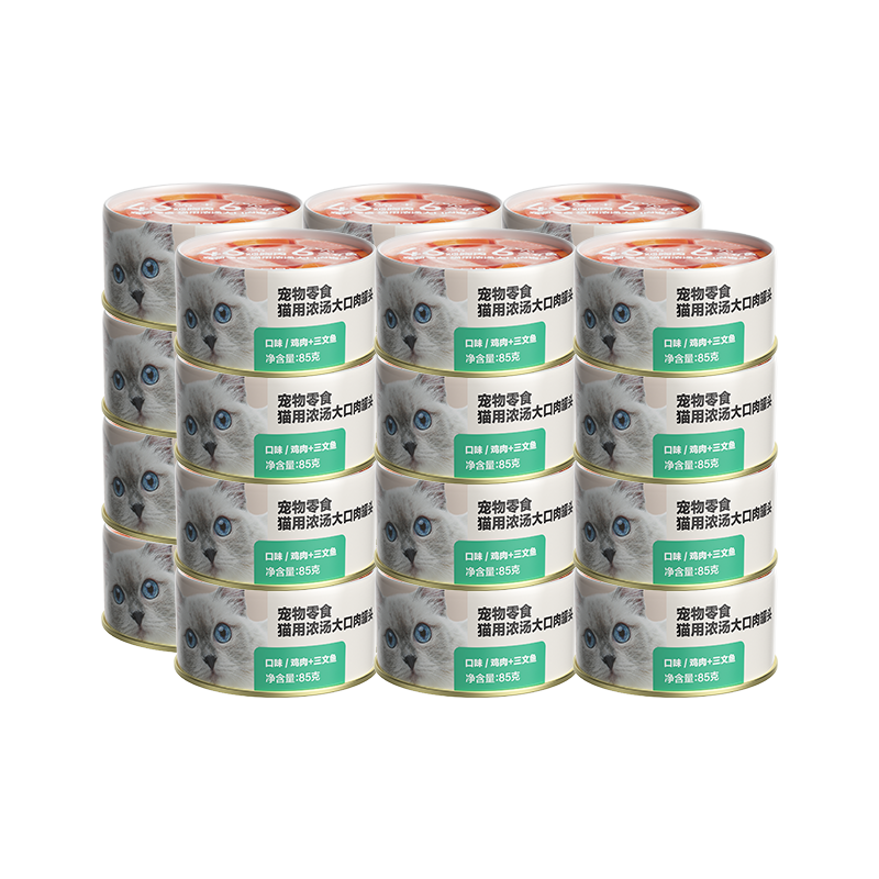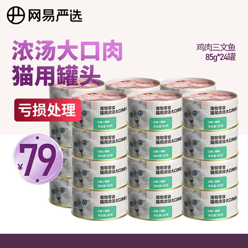 网易严选宠物猫罐头猫粮猫湿粮宠物零食猫用浓汤大口肉罐头 鸡肉 三文鱼 85g*24罐