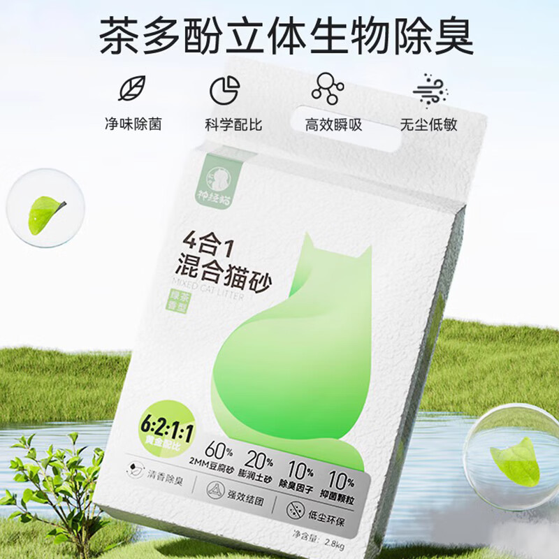 微舒绿茶混合猫砂豆腐膨润土除臭去味无尘猫沙快速结团猫咪矿石神经猫 樱花混合5.6斤 无规格