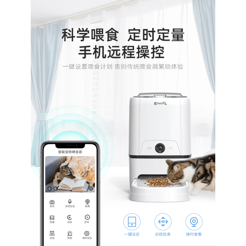 2022升级款 喂食机PetU宠物自动喂食器定时定量猫咪狗狗自助智能WIFI投食机喂粮 小出食量 按键设定版