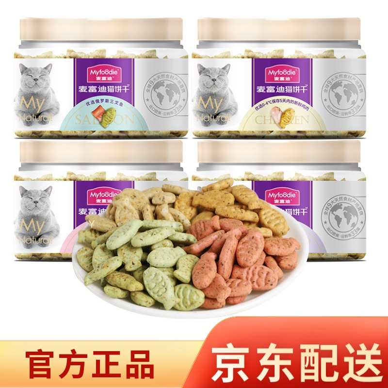 麦富迪(MYFOODIE)麦富迪猫条猫零食磨牙洁齿小鱼饼干成猫幼猫营养猫湿粮 猫饼干混合装丨235g