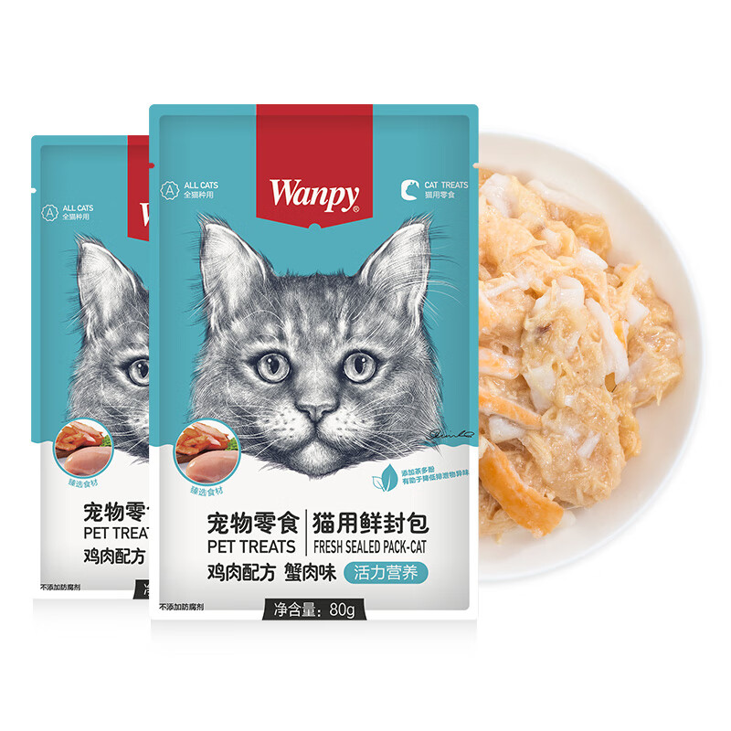 顽皮鲜封包猫咪零食妙鲜湿粮包猫鲜包营养增肥猫条猫罐头 【80g】 鸡肉 蟹肉 10包