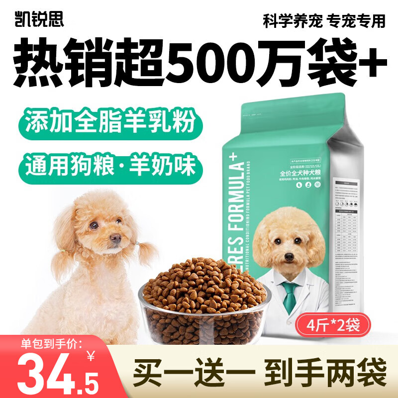 凯锐思泰迪萨摩耶金毛拉布拉多哈士奇狗粮小型犬幼犬成犬通用型粮 【羊奶味8斤】实发两袋