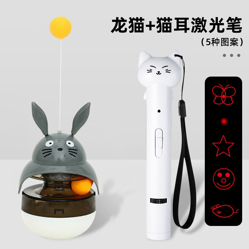 hoopet 猫玩具自嗨不倒翁解闷神器逗猫棒猫转盘小猫漏食球猫猫小球玩具自动逗猫宠物猫咪用品 龙猫 猫耳激光笔
