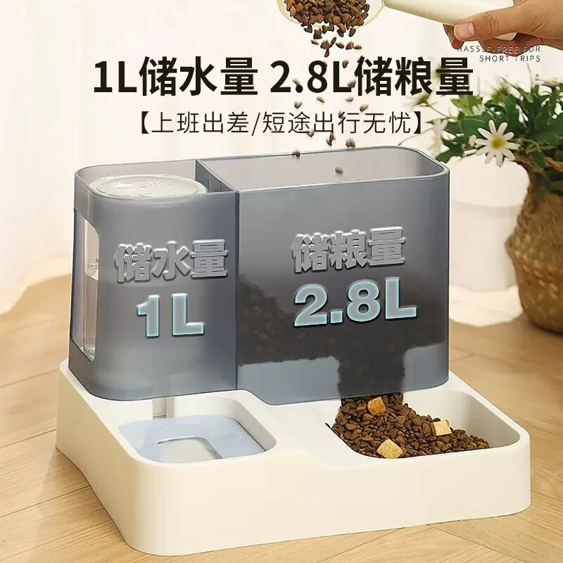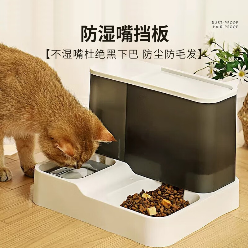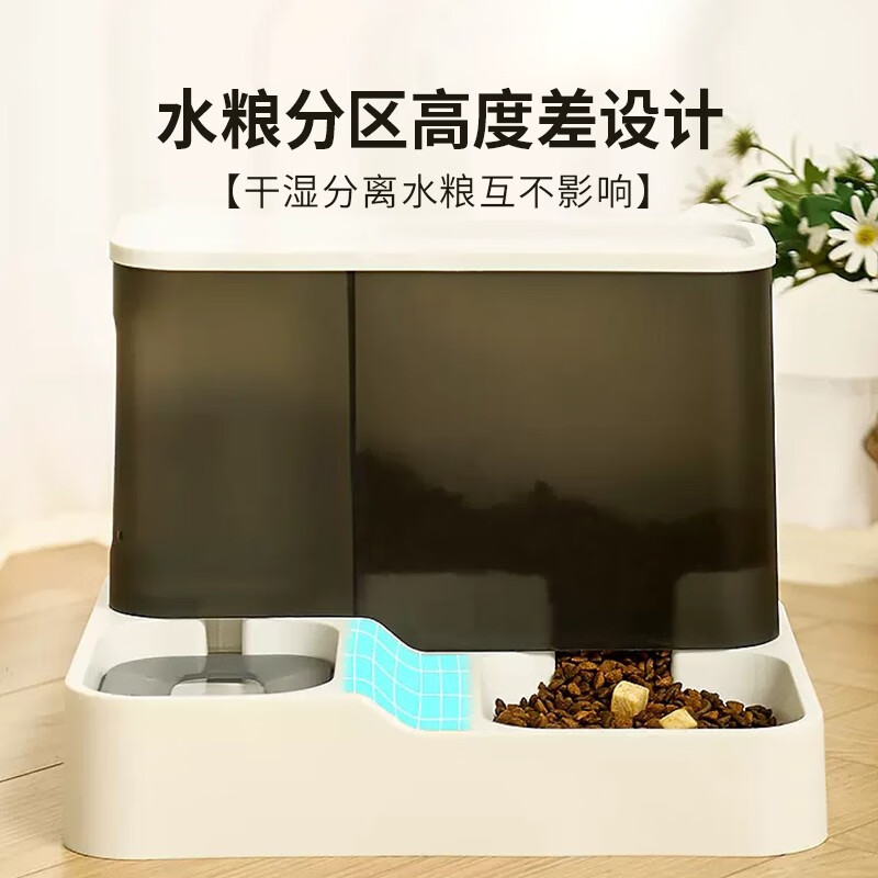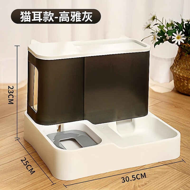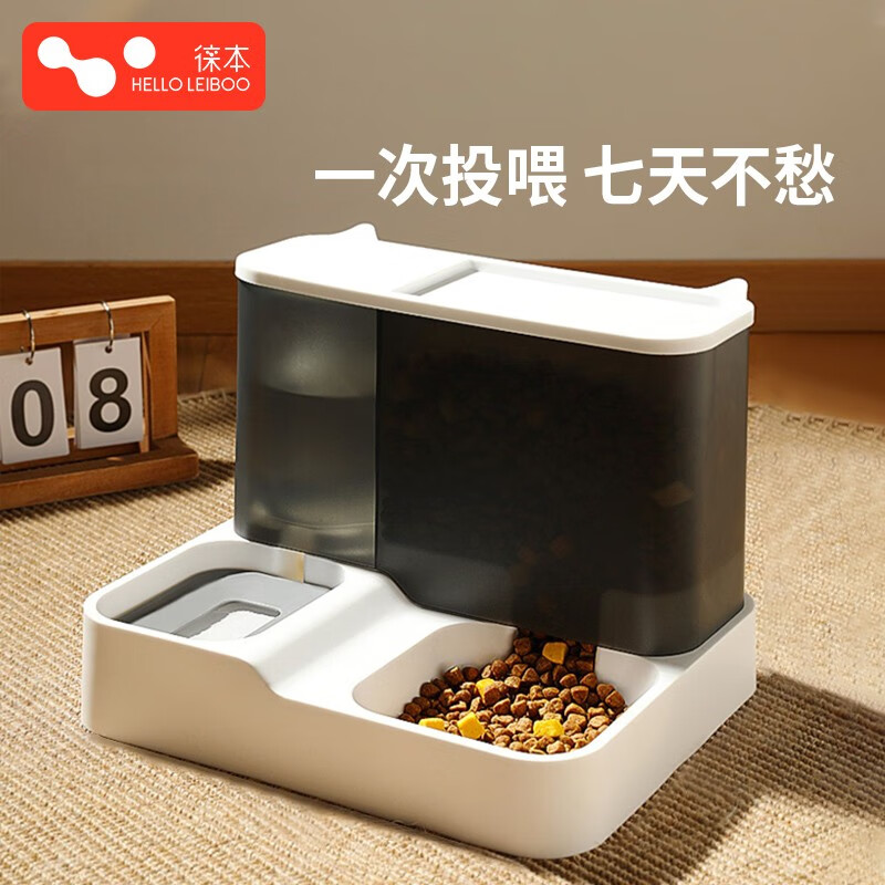 HELLOLEIBOO徕本 猫碗食盆双碗宠物自动饮水喂食器一体狗狗猫咪喝水碗猫粮 灰色【喂食饮水一体机】 猫狗吃饭喝水一体