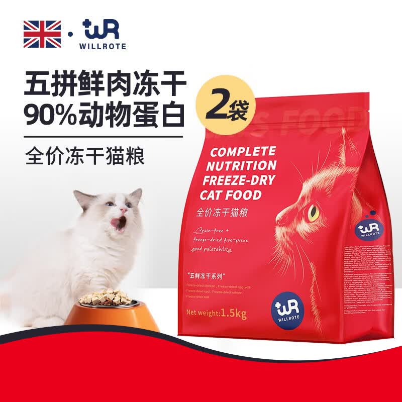 威洛特普安特冻干猫粮主食五拼美毛无谷全价幼猫成猫粮增肥发腮 5鲜全价冻干猫粮 1.5kg*2袋(6斤)
