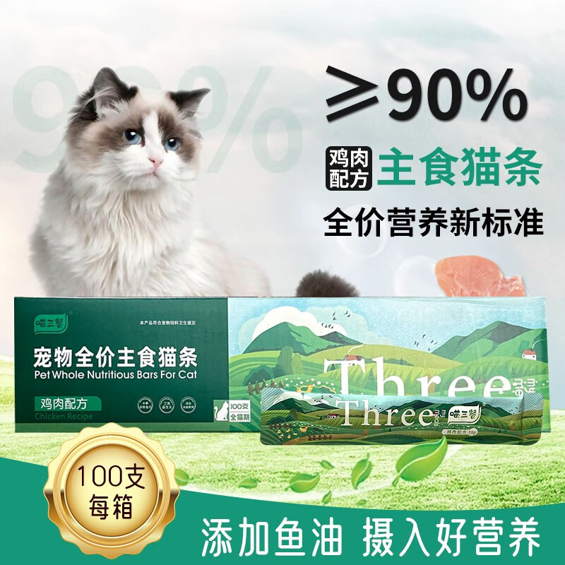 喵三餐猫咪主食猫条宠物零食全价鱼油猫条幼猫成猫营养湿粮 猫条鸡肉味15g*100条