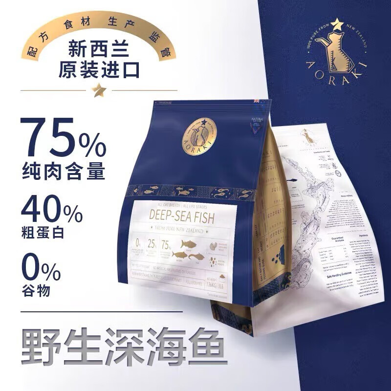 云顶星(aoraki)新西兰进口猫粮红肉 禽肉 海洋鱼配方增肥发腮 全价全期主粮 深海鱼 12磅(5.4kg)