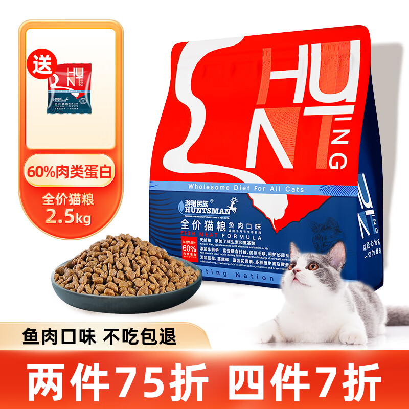 游猎民族成猫幼猫猫粮全营养配方英短成猫深海鱼天然猫粮布偶蓝猫全价 猫粮(鱼肉味)5斤