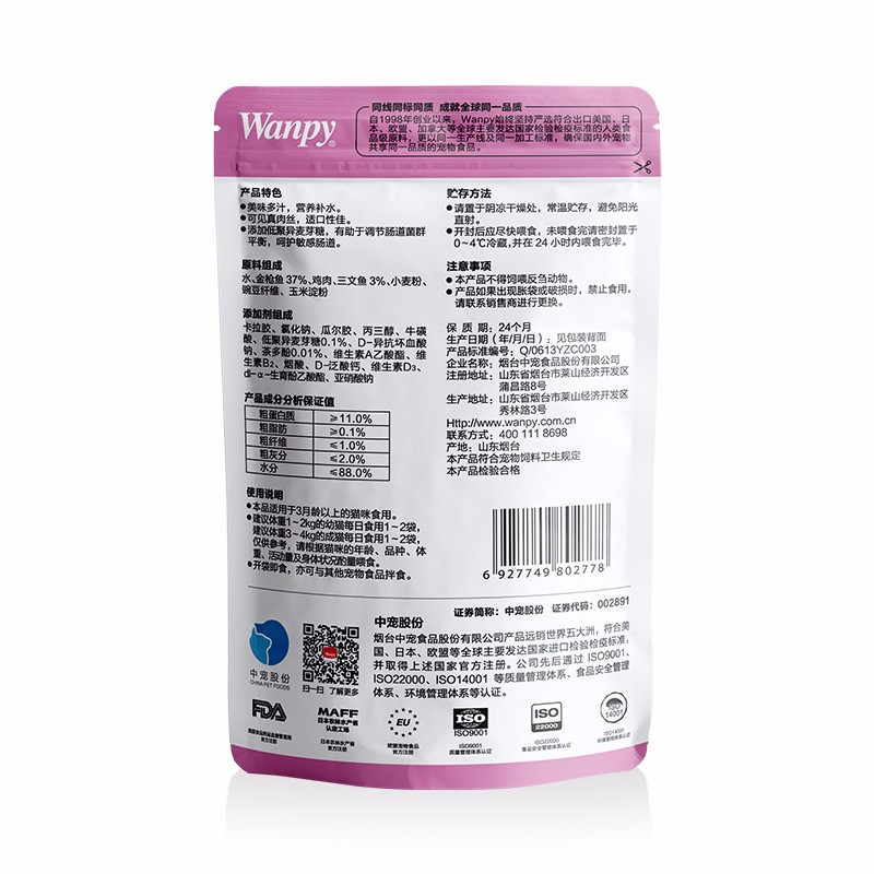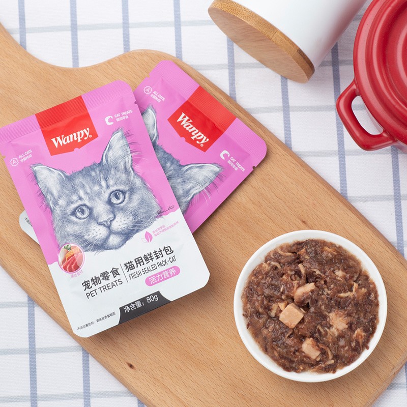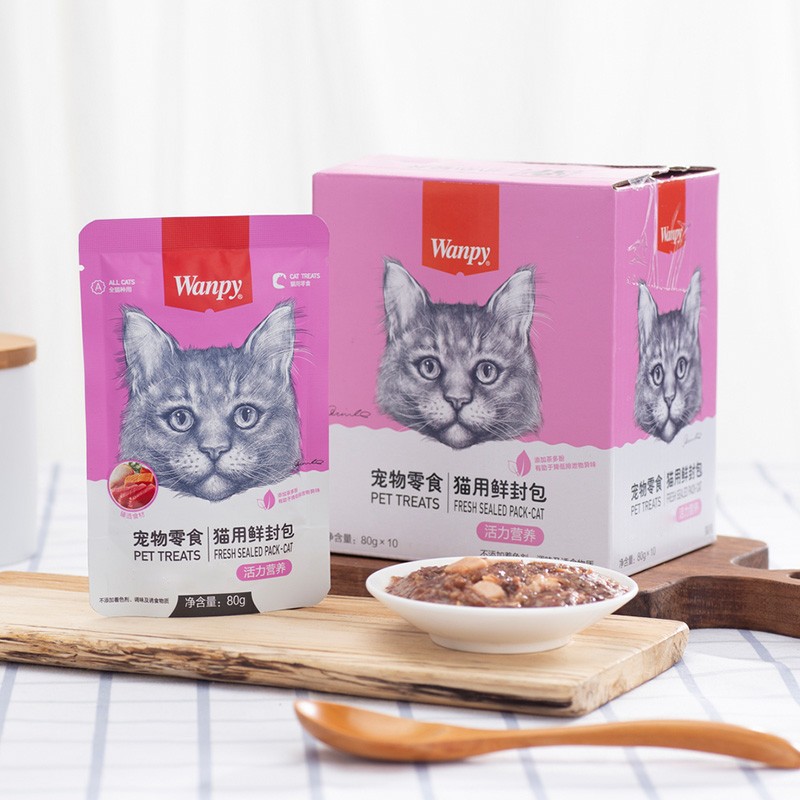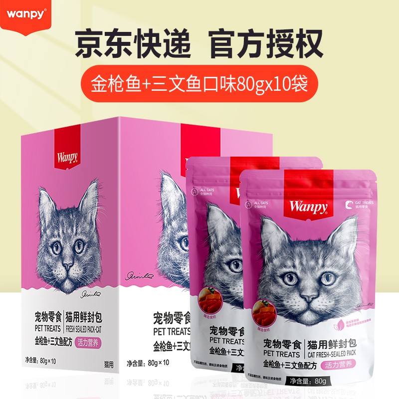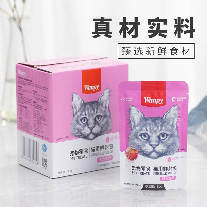 顽皮(Wanpy)猫咪鲜封包 宠物猫粮肉粒包 猫湿粮猫罐头整盒装 金枪鱼 三文鱼 80g*10袋