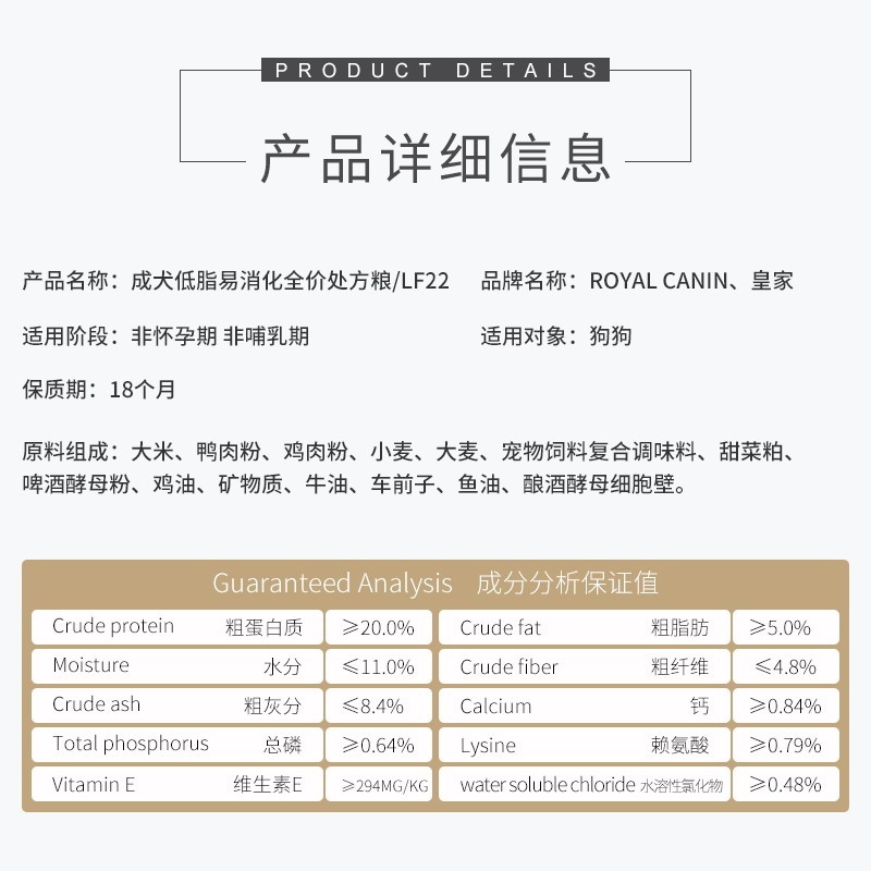 皇家犬低过敏性全价处方粮DR21 狗狗瘙痒皮炎皮肤病预防皮肤调理通用型全价犬低敏主粮 皇家犬低脂易消化处方LF22粮胰腺炎肠胃1.5kg