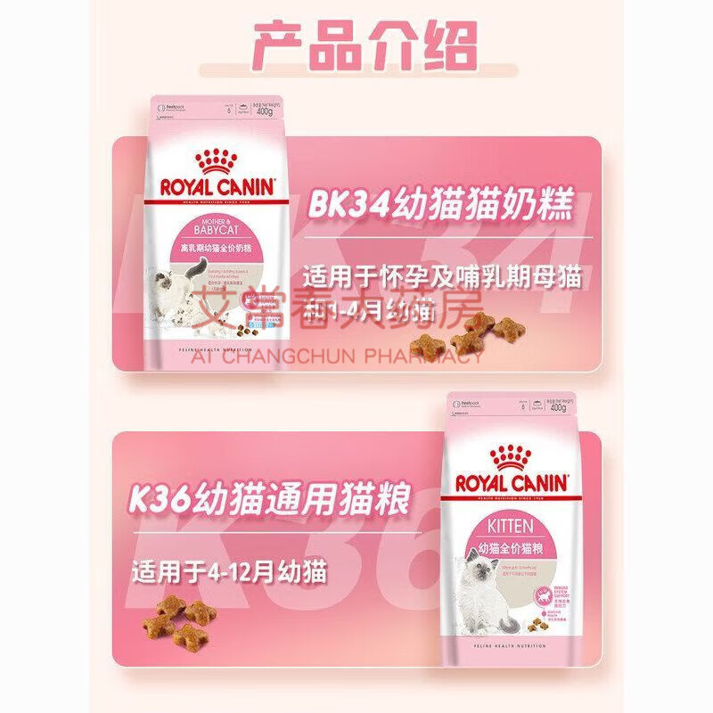 皇家B34幼猫奶糕0.4kg全价猫粮1-4月龄蓝猫布偶通用幼猫粮 B34奶猫糕400g单包