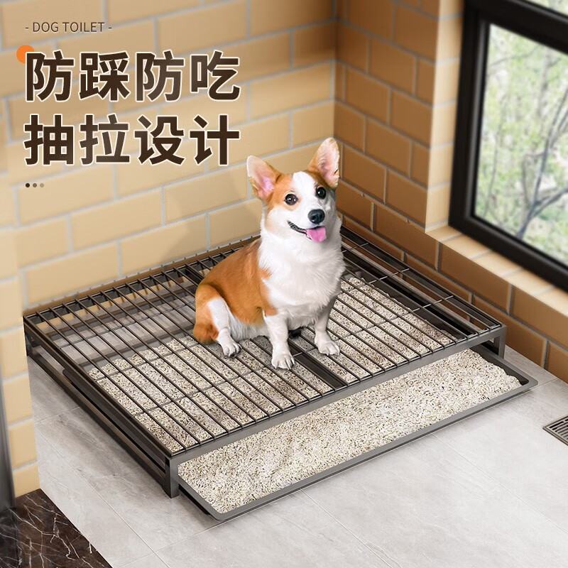 宠趣汇狗厕所小型犬宠物防踩屎尿盆中大型犬拉屎便盆柯基金毛狗狗砂盆 小号【53*35*7CM】孔距18MM