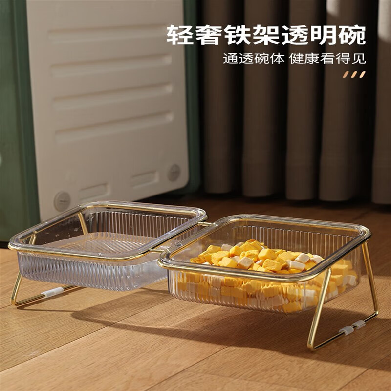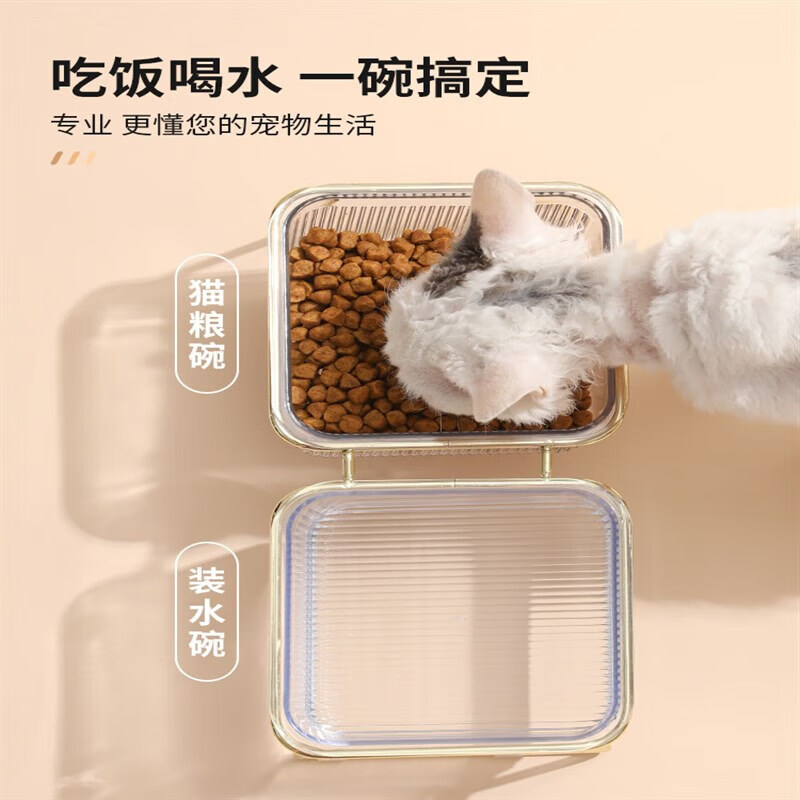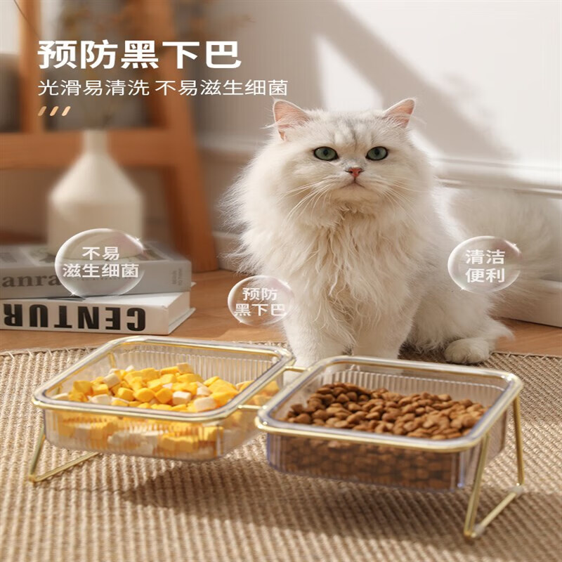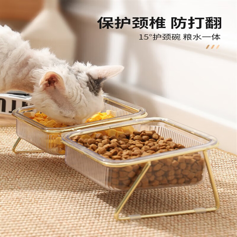 宠淘气猫碗双碗粮盆二合一护颈猫咪饮水狗碗喝水大型犬狗狗水碗食盆一体 铁艺双碗【婴用奶瓶级 护颈 三重防打翻