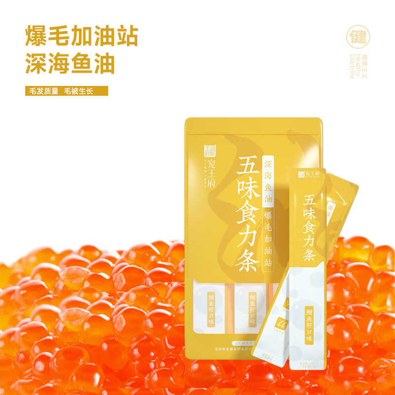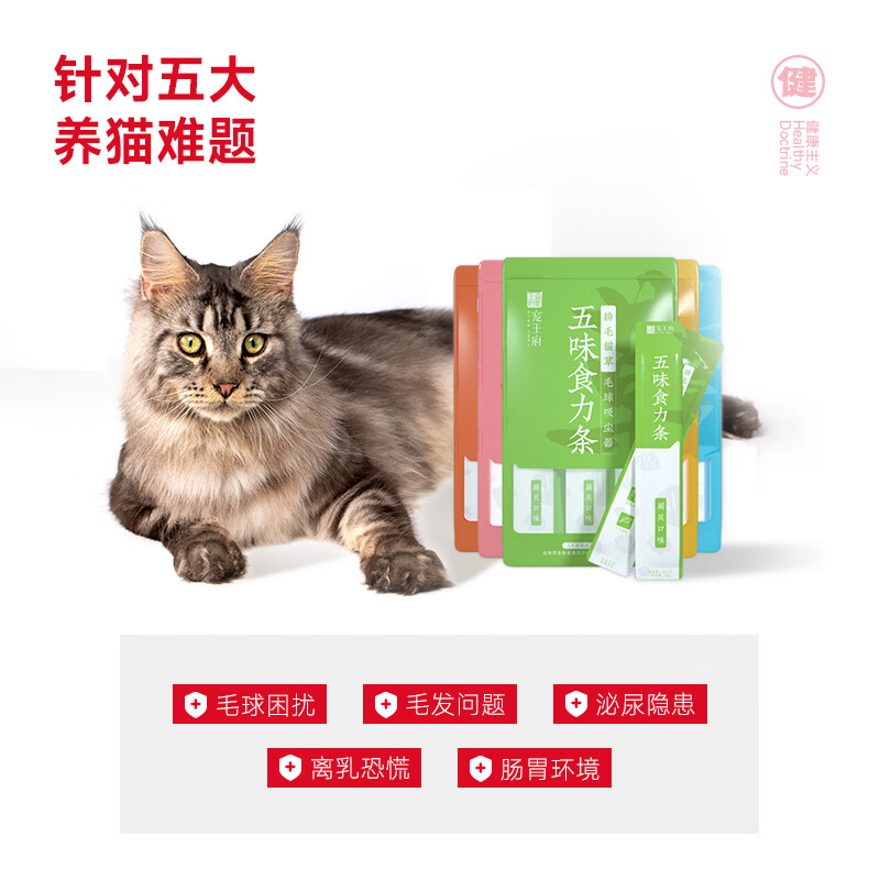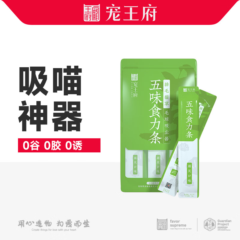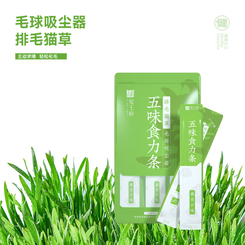 宠王府五味食力功能猫条零食鱼油亮眼爆毛营养补水化毛鲜肉无诱食剂 5包/25支 排毛化毛/排毛猫草/扇贝口味