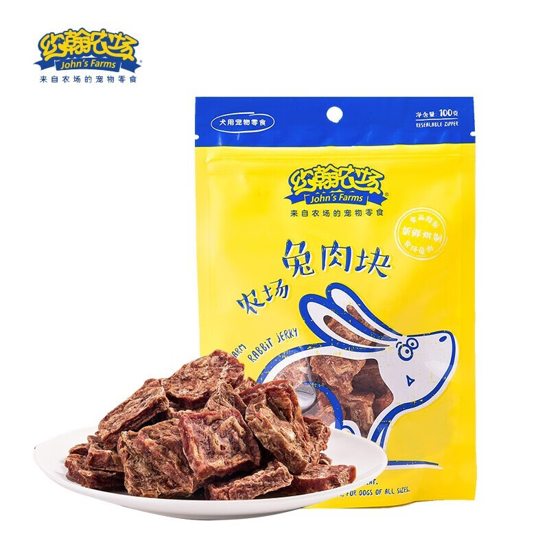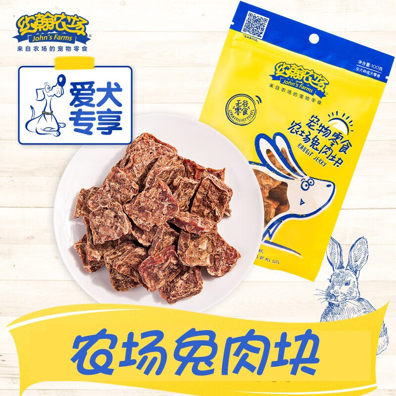 约翰农场狗狗零食大礼包宠物训犬鸡胸肉干泰迪博美金毛幼犬洁齿磨牙肉干 兔肉块100g