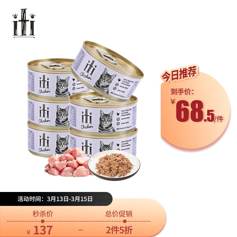 依蔕iti 猫粮 猫罐头 鸡肉罐85g*6 宠物成幼猫零食营养主食湿粮罐