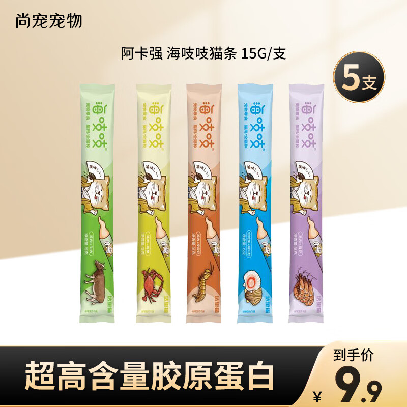 阿卡强(AKACHAN)海吱吱猫条15g 猫零食猫咪零食猫湿粮幼猫成猫宠物零食 15g*5条(口味随机)