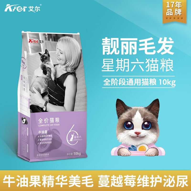 艾尔星期六猫粮 牛油果配方暹罗英短美短全体型美毛防脱毛全价猫粮低盐 星期六猫粮10kg