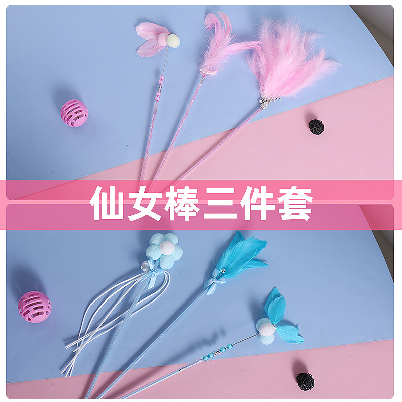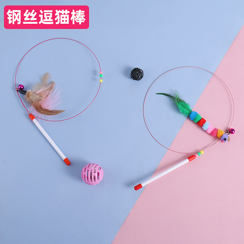 逗猫棒抓咬套装自嗨解闷逗猫玩具幼猫用品羽毛带铃铛耐咬长杆新款