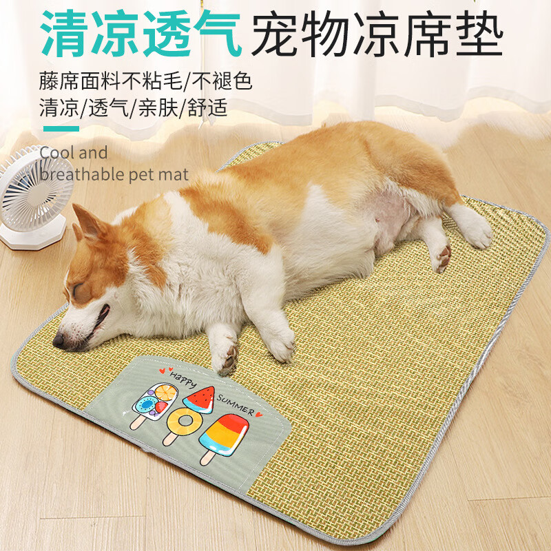 调皮窝 宠物垫冰凉草窝滕竹降温夏季宠物窝猫睡垫耐抓咬狗床 加厚凉藤席 s码(35×45cm)