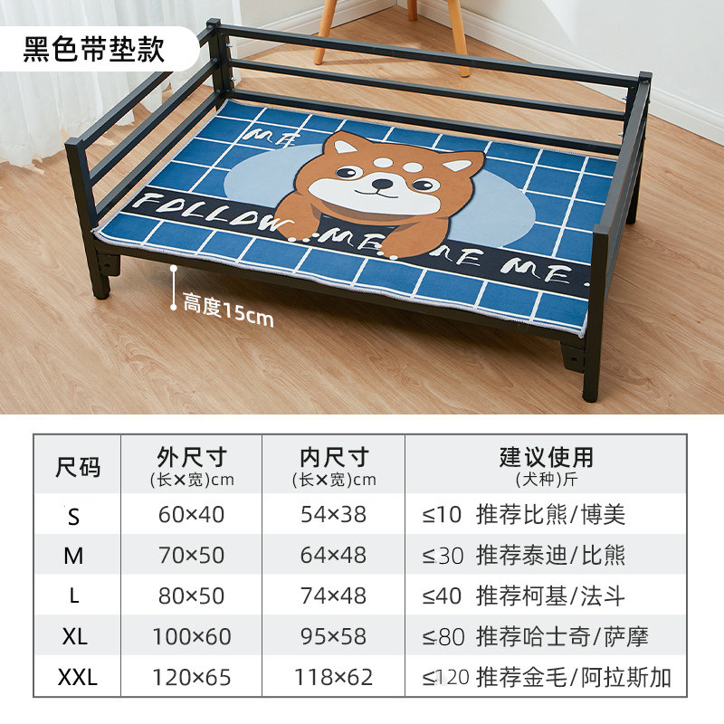 法耐 狗猫床铁艺宠物离地行军床四季通用防撕咬离地夏天夏季狗狗床宠物床金毛狗床大型犬 喷塑防锈方管铁架床 垫子 L-大型80*50cm建议40斤内