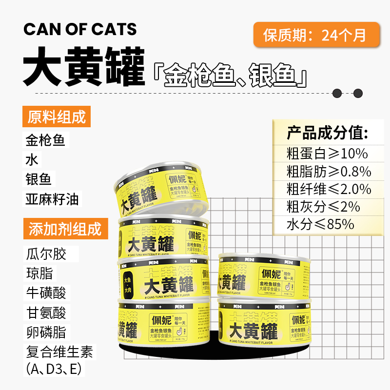 佩妮6 1 猫罐头零食混合口味猫咪零食补水汤罐幼猫成猫增肥发腮营养 6罐 大肉块:金枪鱼银鱼 170g*6罐