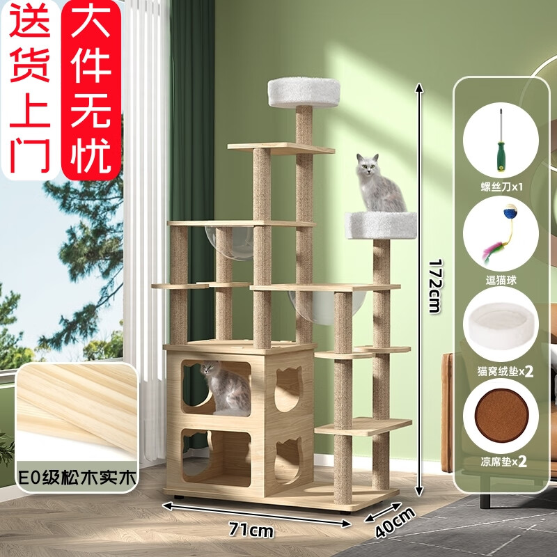实木猫爬架猫树猫抓板剑麻黄麻猫抓柱太空舱大型多层跳台小型四季通用带猫窝一体通天柱小户型不占地猫咪玩具 宠者堡-C09-山水堡