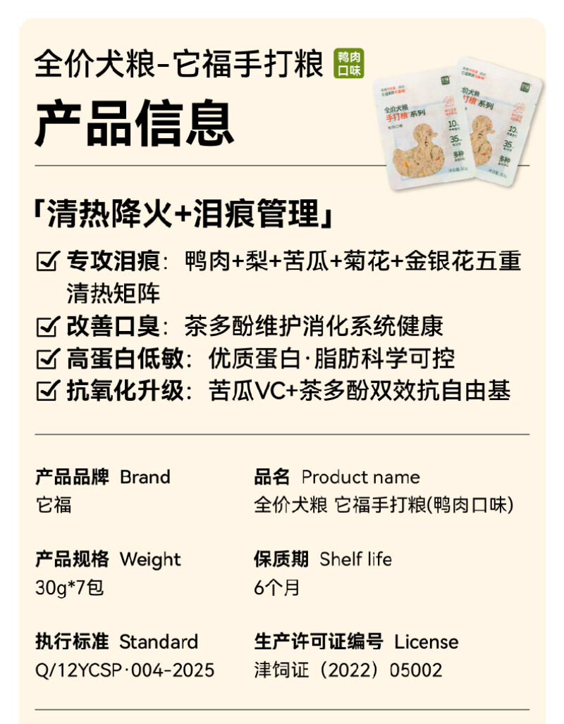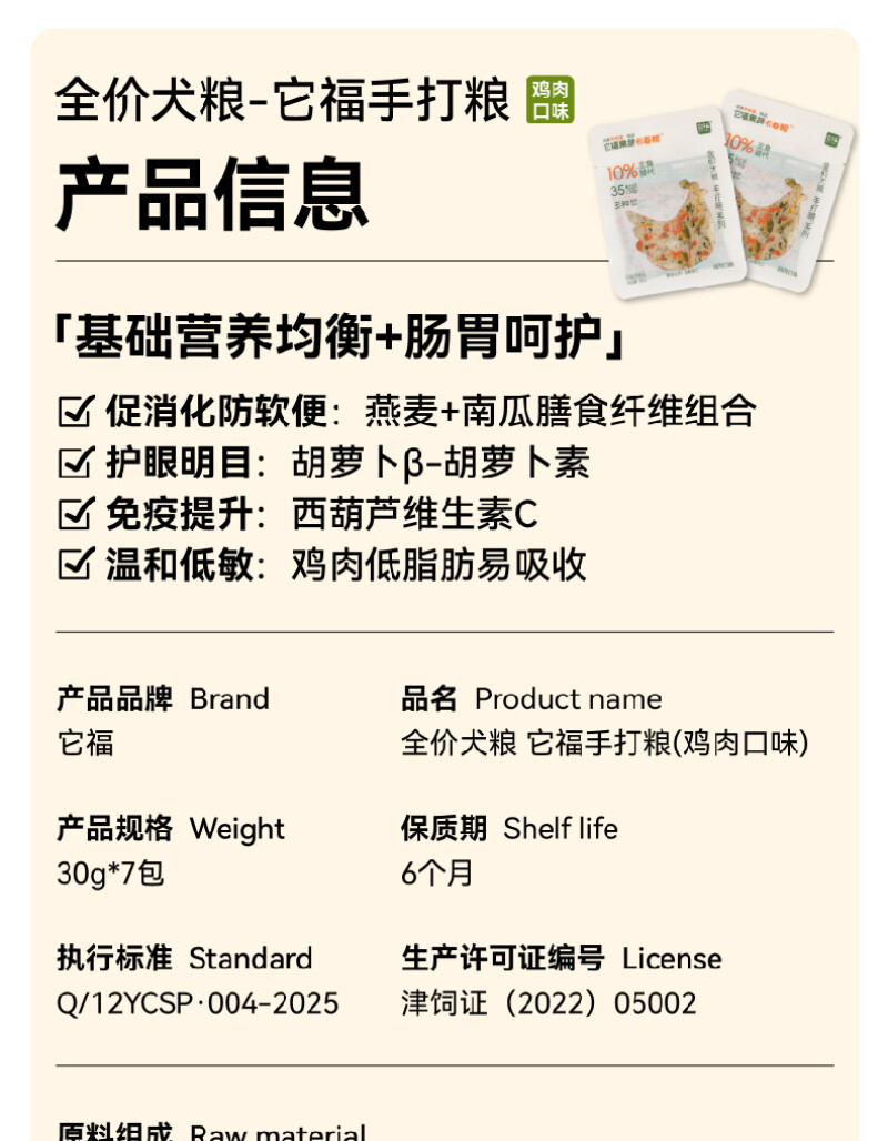 它福 手打粮果蔬长寿粮鲜食狗粮30g/210g