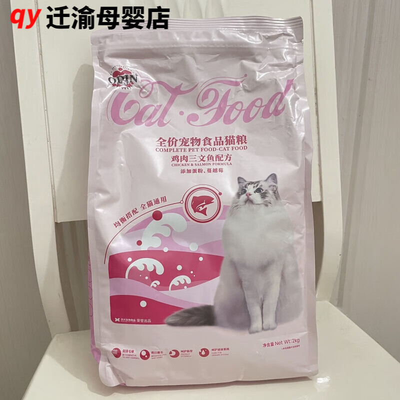 奥丁猫粮 幼猫成猫 增肥营养发腮英短蓝猫三文鱼味 天然粮4斤 全价通用猫粮(鸡肉三文鱼) 2kg 1桶