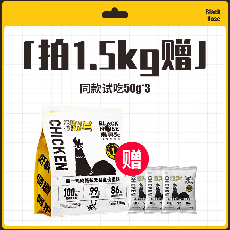 黑鼻头低敏猫粮全价成猫幼猫粮无谷猫粮低敏防软便增肥发腮1.5kg高蛋白 单包3斤【 试吃150g】
