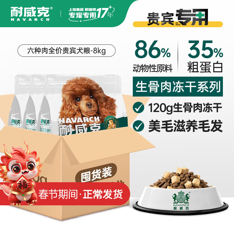 耐威克 六种肉狗粮 生骨肉冻干鲜肉无谷全价 六种肉·贵宾丨8kg