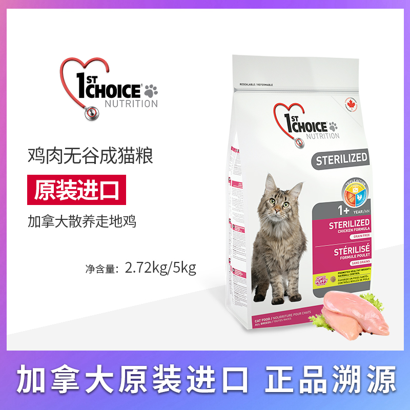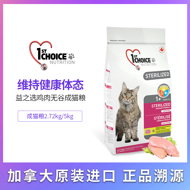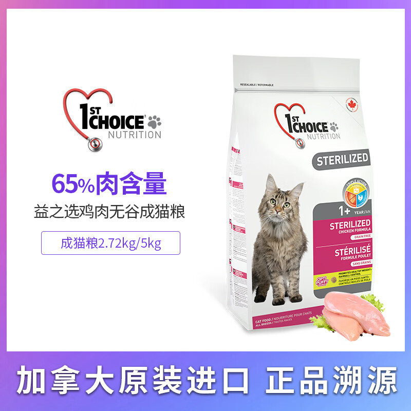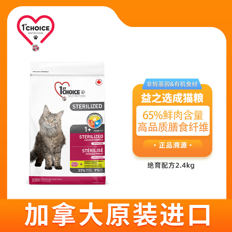 加拿大原装进口 益之选1'st choice成猫粮 绝育配方无谷成年期猫粮2.4Kg 鲜肉天然粮鸡肉配方喵咪主食主粮