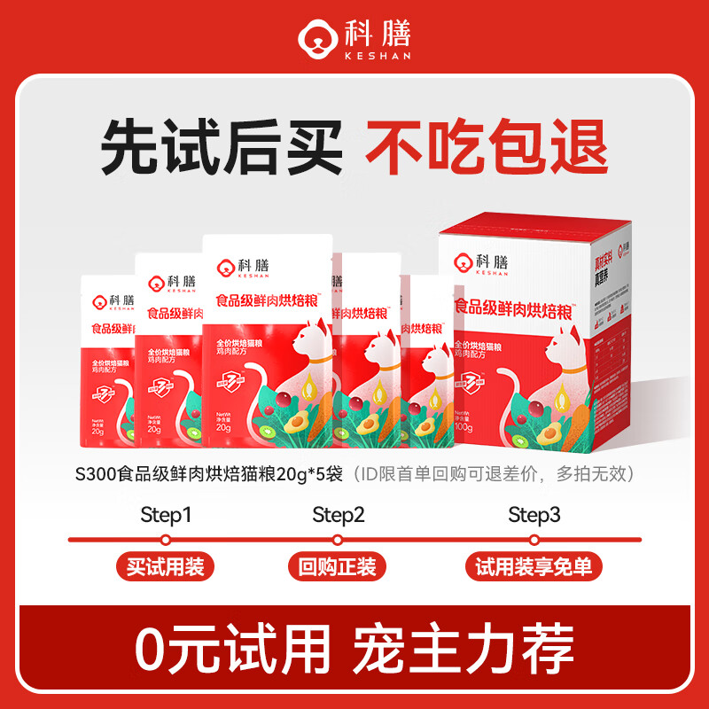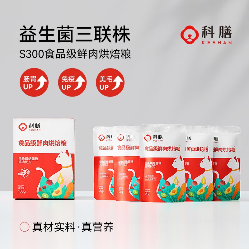 科膳S300全价低温烘焙猫粮幼猫成猫全阶段无谷鲜肉营养小食袋 外观 试用装100g