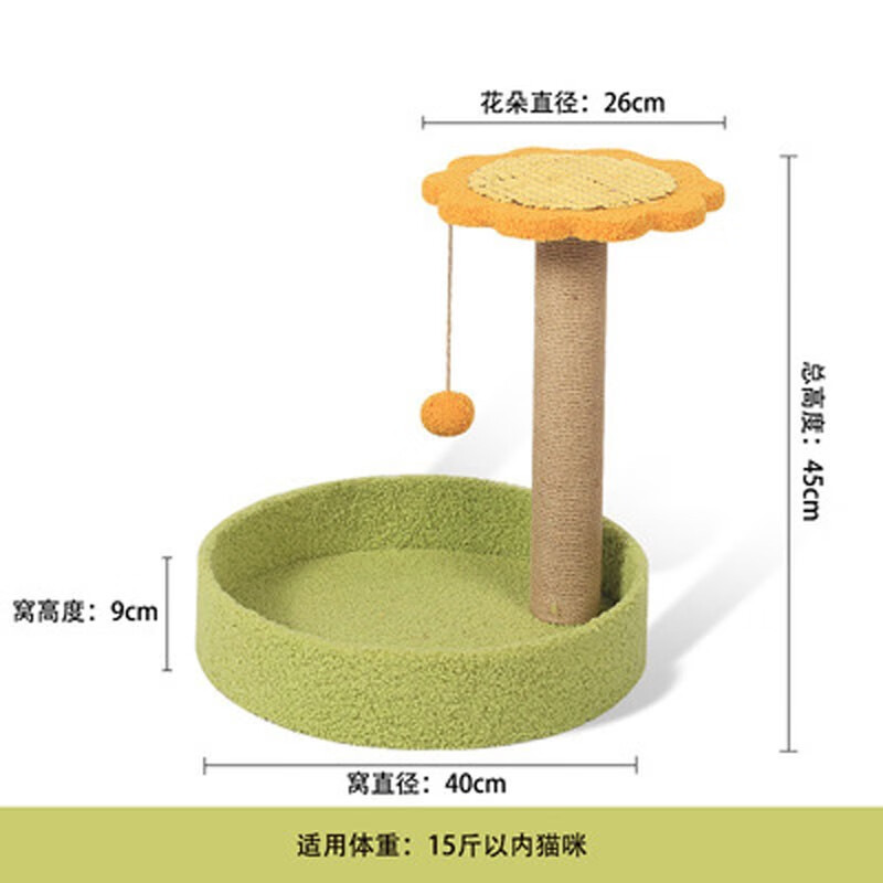 猫爬架猫窝猫树剑麻一体通天柱小型带窝实木猫跳台猫抓板猫抓柱猫架子别墅大型猫玩具宠物猫用品猫 绿色圆窝向日葵款