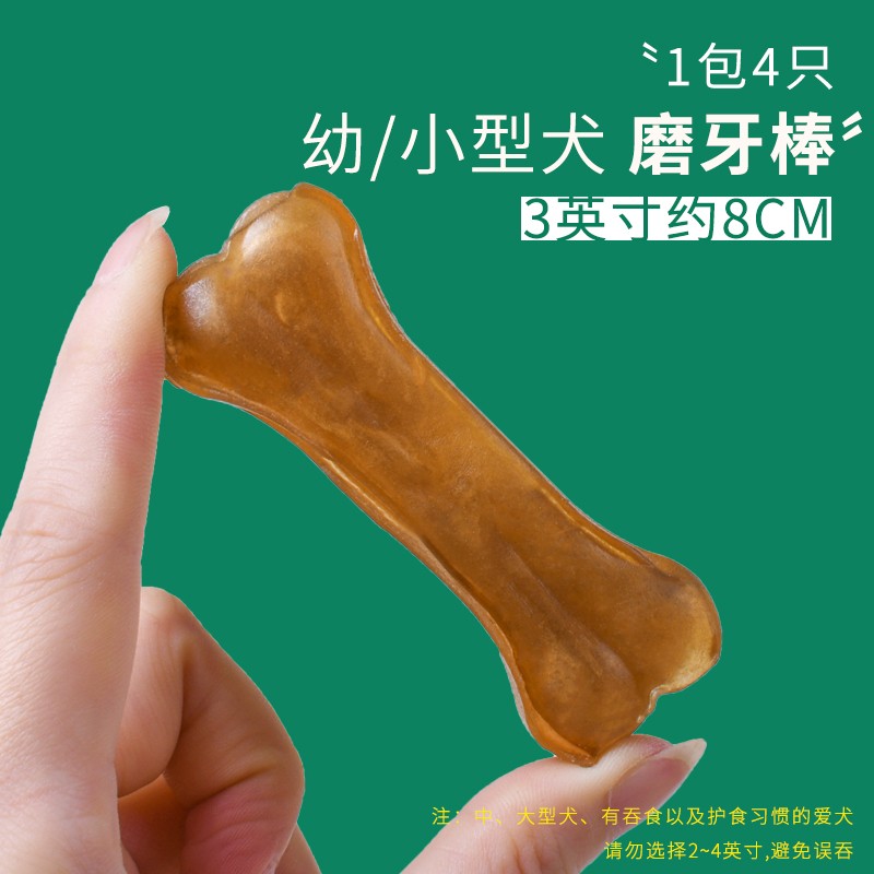 美吉尼狗狗磨牙棒骨头耐咬狗咬胶幼犬大型犬柯基金毛除口臭牛皮压骨零食 3英寸8厘米(4支装) 1包【试吃体验装】