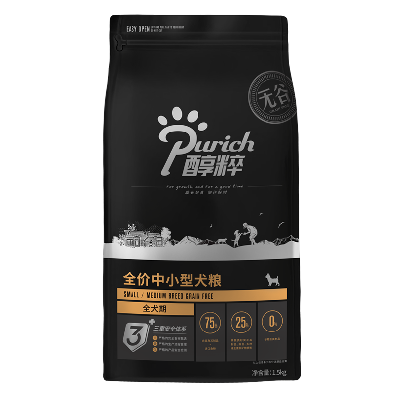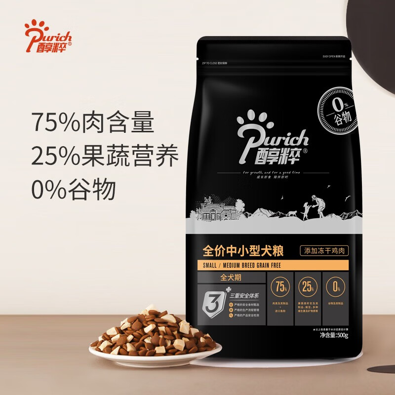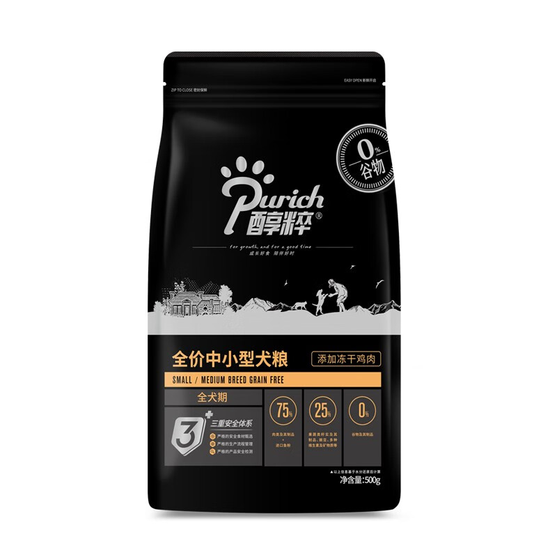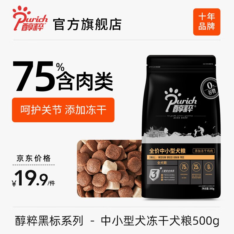 醇粹狗粮 黑标狗粮冻干大中小型全价犬粮成犬幼犬纯粹狗干粮 中小型犬500g新客体验