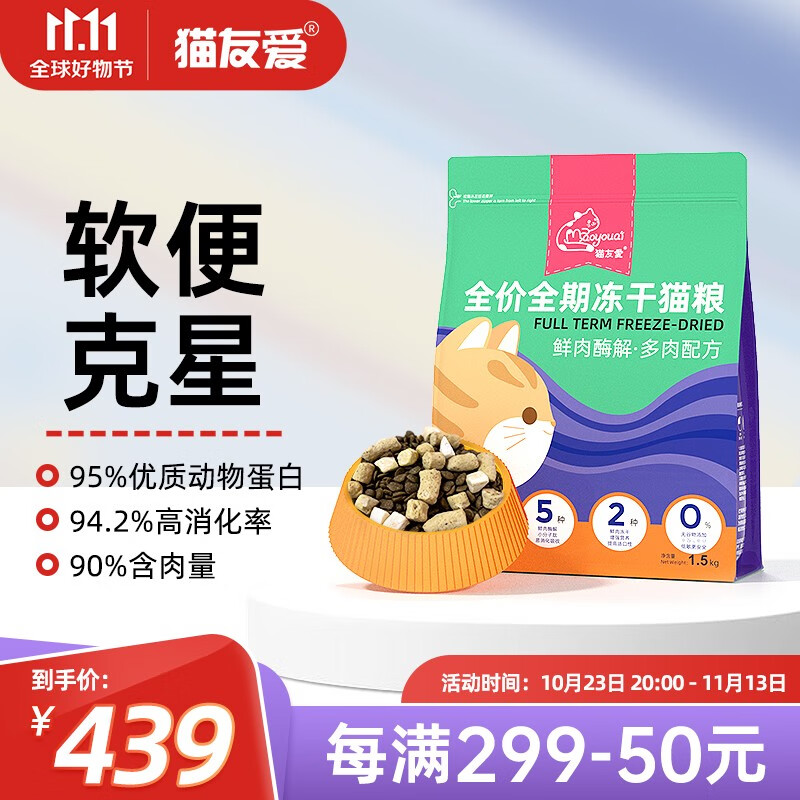 猫友爱猫粮成猫520软便克星全价全期冻干猫粮幼猫无谷低敏高蛋白天然粮 520全期粮9KG