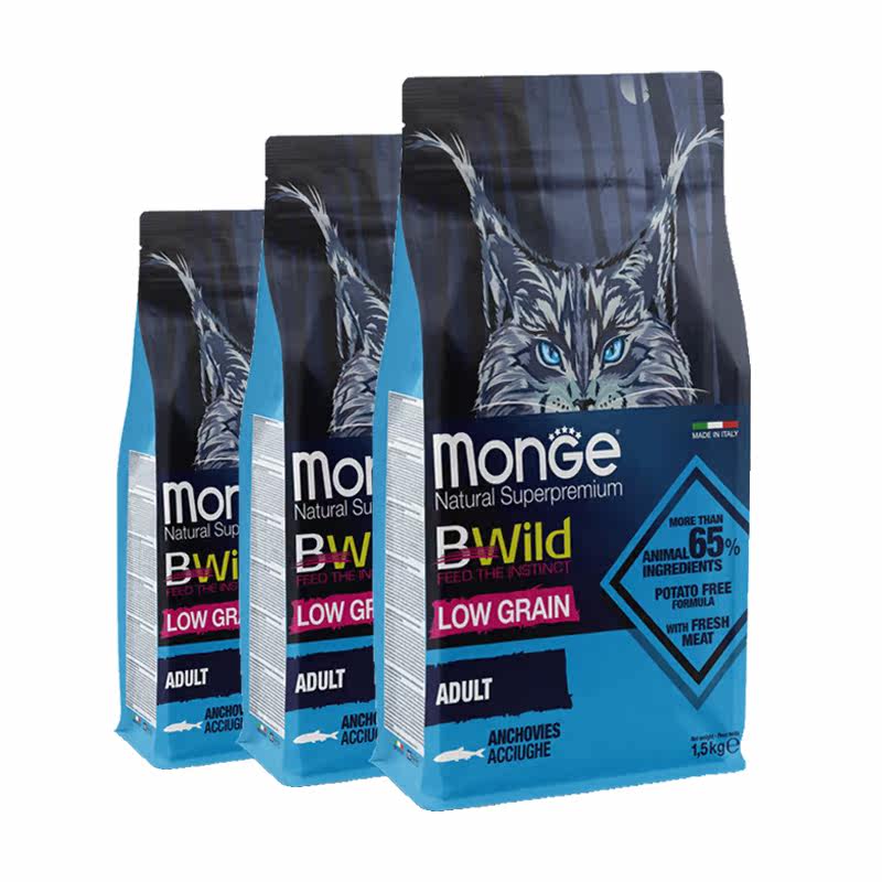 【自营】monge梦吉进口猫粮鱼肉成猫干粮猫咪主粮健体护胃1.5kg*3