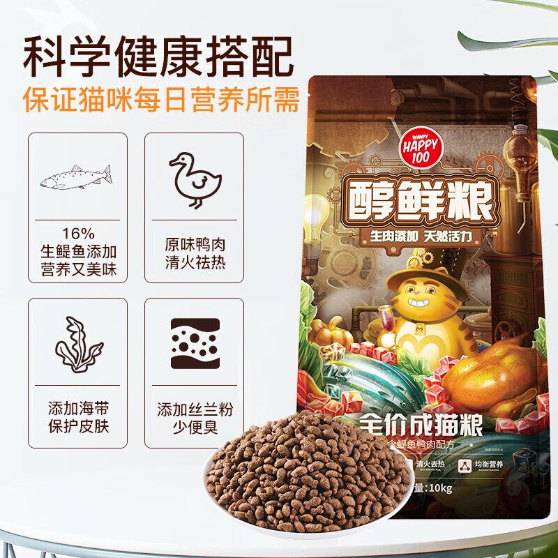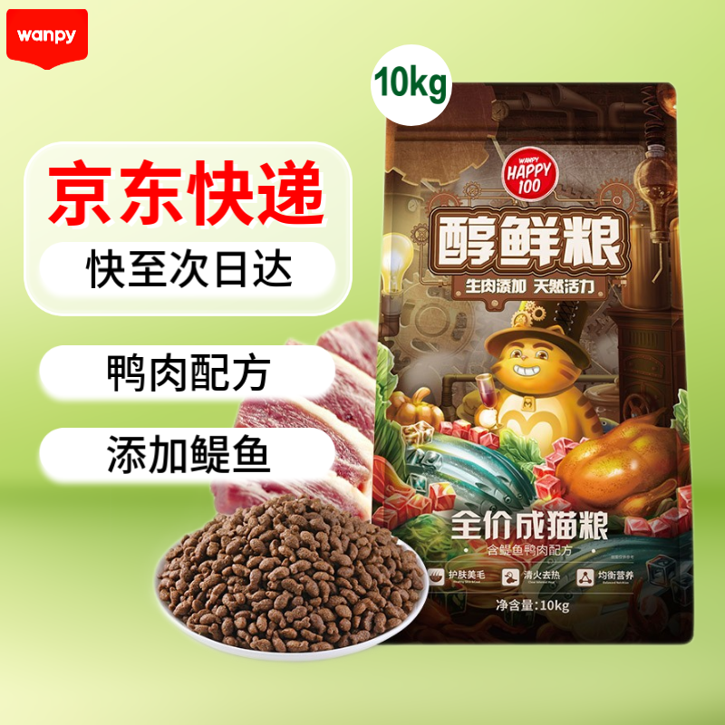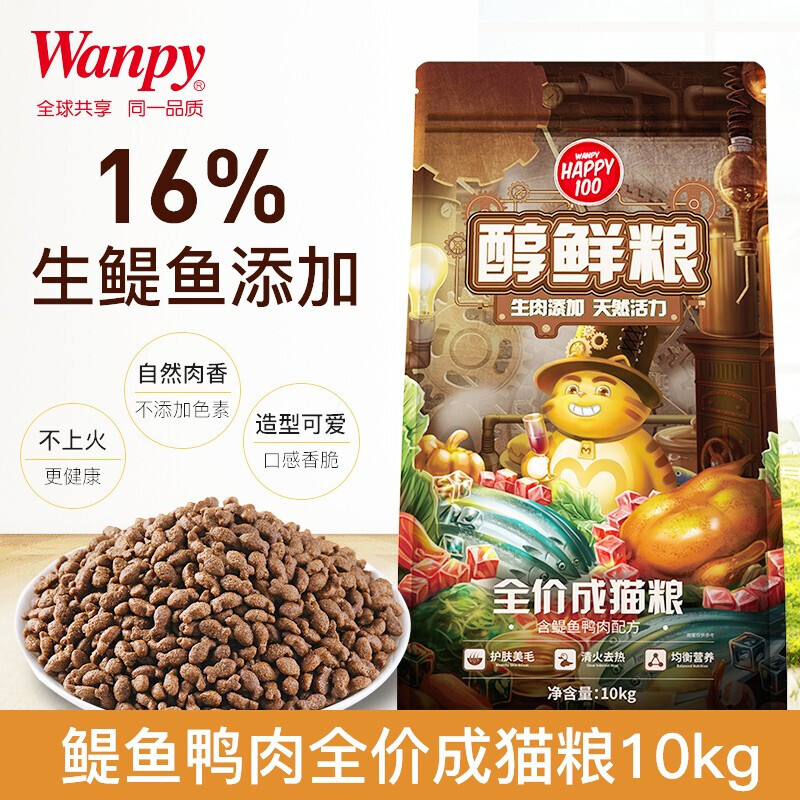 【自营时效】顽皮Wanpy猫粮醇鲜粮全价成猫粮含鳀鱼鸭肉配方英短猫咪主粮10kg 全价成猫粮10kg