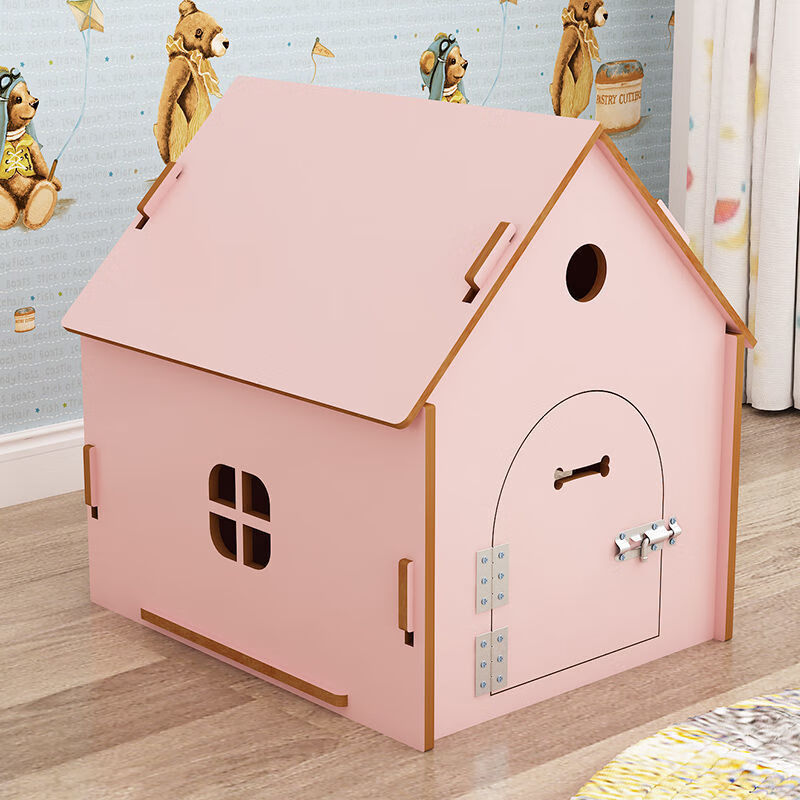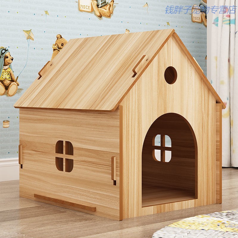 木狗窝四季通用夏季房子型狗屋猫窝室内狗笼猫笼小型犬加厚款狗棚 浅胡桃色无门款 S-小型款_长39宽42高42
