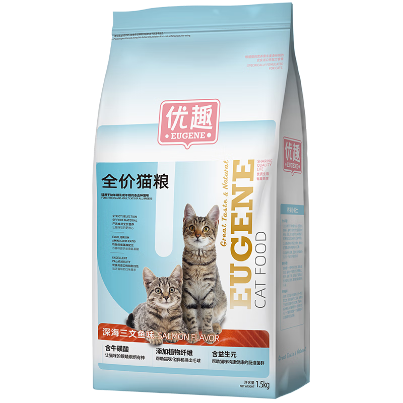 优趣醇香牛肉猫粮成猫幼猫通用猫粮蓝猫天然粮 三文鱼味实发2包共3kg