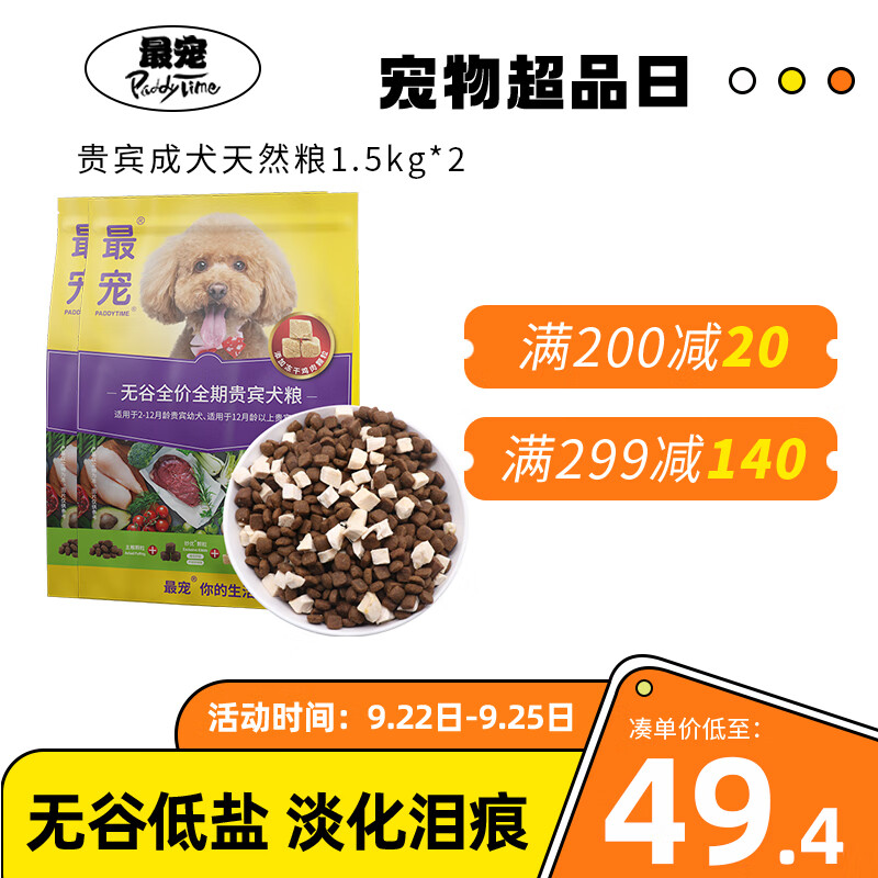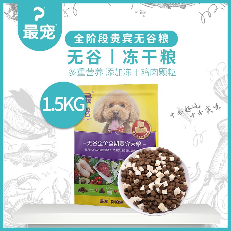 澳洲品牌 最宠(paddytime)全价全期贵宾犬粮1.5kg冻干粮三拼成犬幼犬通用全营养配方狗主粮 贵宾成犬天然粮1.5kg*2