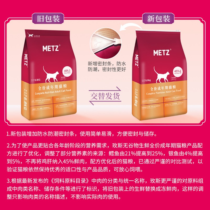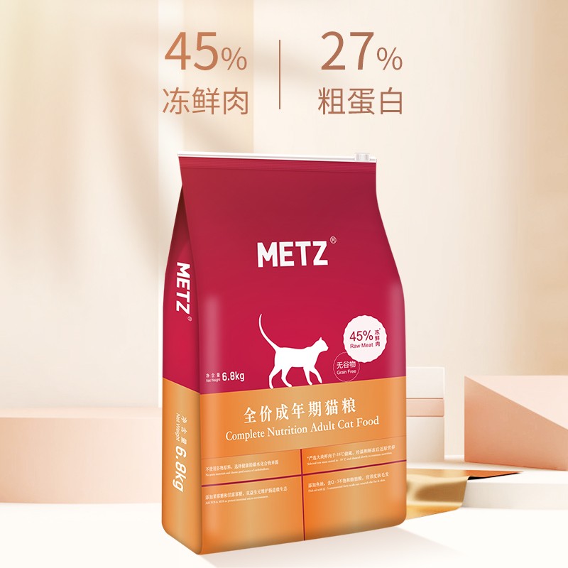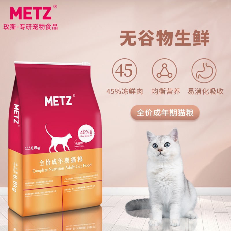 玫斯(metz)猫粮无谷物鲜肉天然猫粮 成猫幼猫全阶段鲜肉孕猫全价奶糕猫粮 成猫粮6.8KG(成猫)