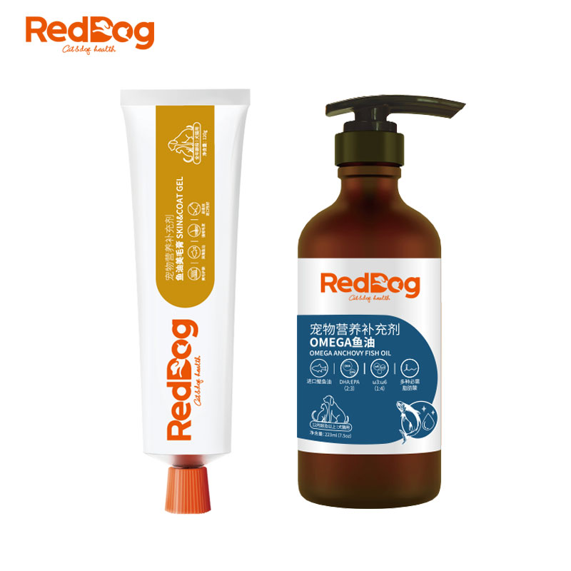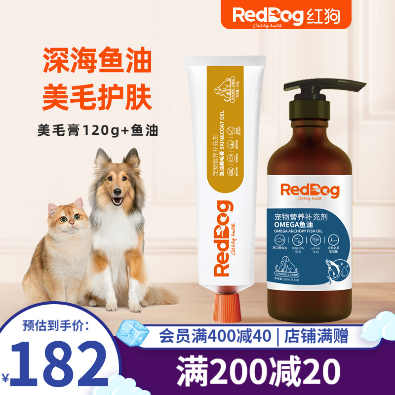 红狗RedDog 鱼油美毛膏 狗狗猫咪深海宠物鱼油 泰迪金毛美毛护肤 亮毛爆毛 犬猫通用 美毛膏120g 鱼油223ml