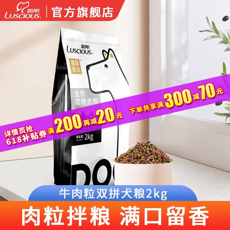 路斯宠物狗狗牛肉粒冻干狗粮泰迪柯基比熊通用型小型犬中大型犬主粮 【全期通用】牛肉双拼犬粮2kg