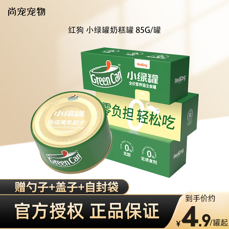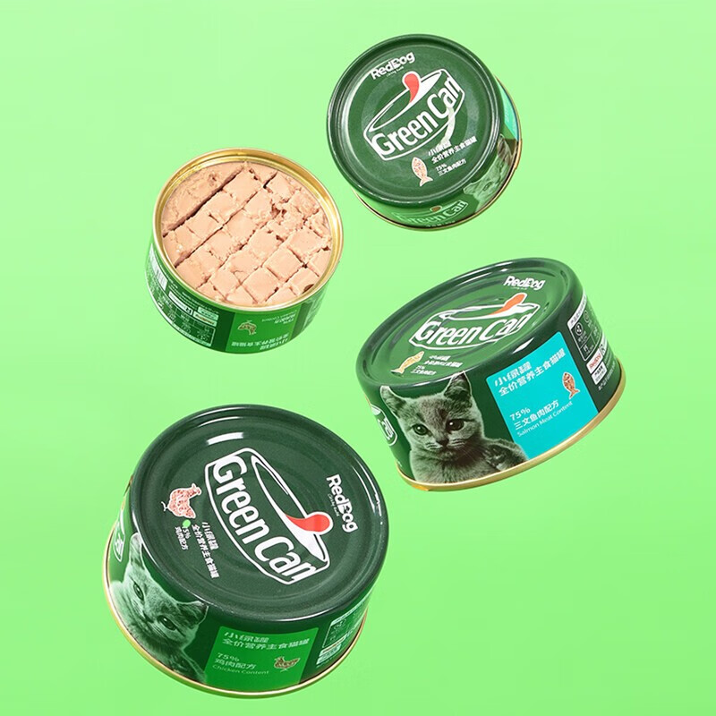 红狗(RedDog)小绿罐猫罐头85g 猫咪幼猫成猫罐头零食湿粮 主食猫罐头宠物零食 幼猫奶糕罐 85g 3罐