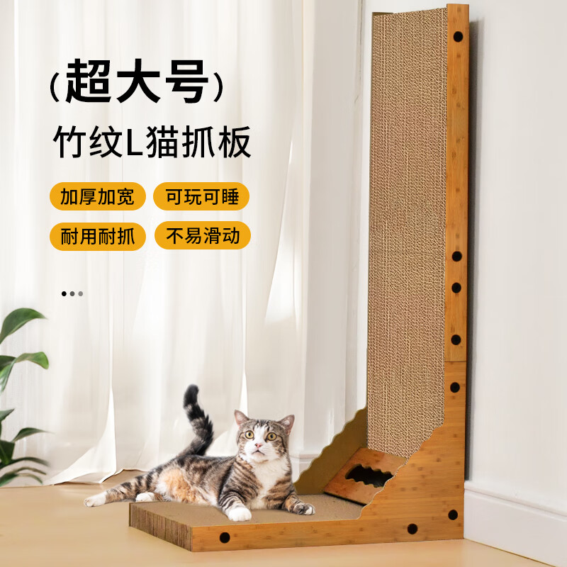 得酷 特大猫抓板立式L型猫抓柱耐磨不掉屑猫爪板猫磨爪玩具猫用品 特大巨无霸L形【BC高密坑】赠猫薄荷