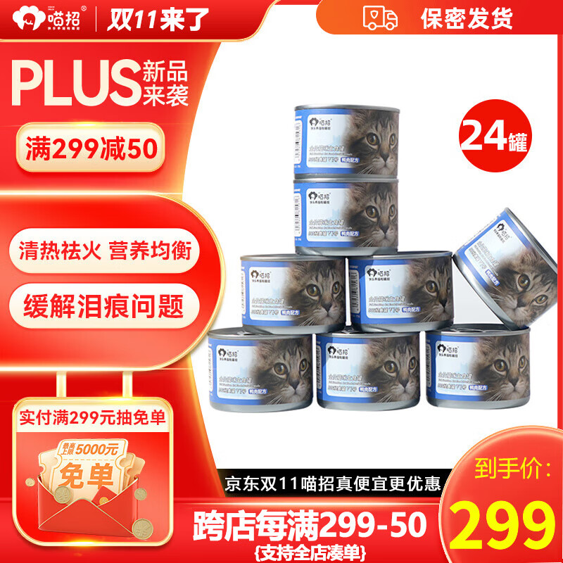 喵招985大容量全价猫咪主食罐头成幼猫补充营养肉补水增肥发腮猫罐头 鸭肉口味170g*24罐